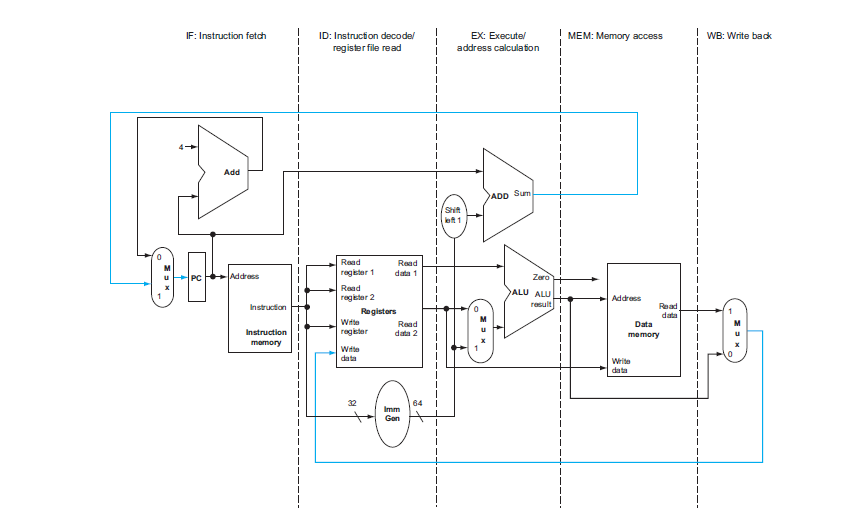 - 階段透過 MUX 選擇下一個指令的位置,由 Program Counter (PC) 指向下一個指令的位址